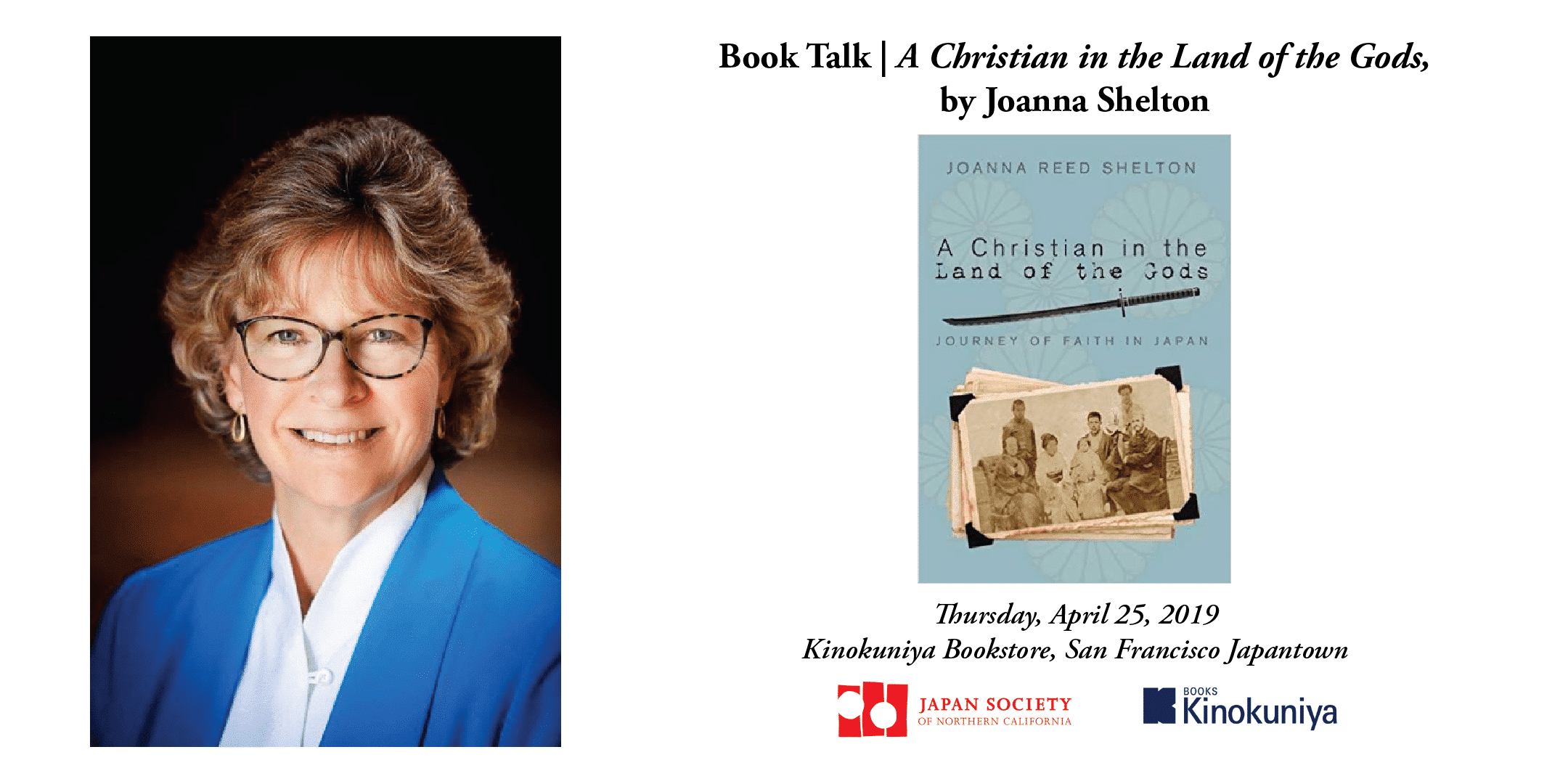 Please come to the Kinokuniya book store in Japan Town on April 25 at 6:00PM to hear author and former US trade official Joanna Reed Shelton talk about her book, A Christian in the Land of the Gods, the remarkable story of her great-grandfather who was a Christian missionary in Meiji Japan.  In November 1877, three months after Emperor Meiji’s conscript army of commoners defeated forces led by Japan’s famous “last samurai,” the Reverend Tom Alexander and his new wife, Emma, arrived in Japan, a country where practicing Christianity had been punishable by death until 1868. Joanna’s book offers an intimate view of the hardships and challenges faced by nineteenth-century missionaries working to plant their faith in a country just emerging from two and a half centuries of self-imposed seclusion. The narrative takes place against the backdrop of wrenching change in Japan and the jockeying for territory and influence by foreign powers in East Asia, as seen through the eyes of a Presbyterian missionary from East Tennessee.