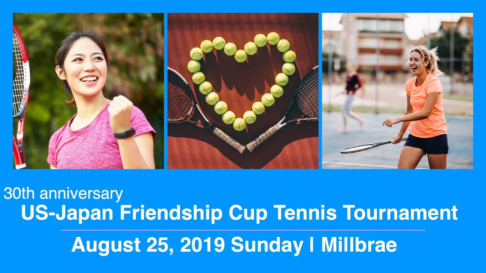 テニスファン待望の Japan – US フレンドシップテニストーナメント、日本総領事杯テニス大会は、今年30周年を迎えます。Millbrae で8月25日(日曜日)に開催されます。試合経験の少ない方から上級者までご参加いただけます。昨年もお互いの実力発揮と交流トークに大いに盛り上がりました。豪華商品、ランチ付き。お誘い合わせの上、是非ご参加ください!(昼食付)